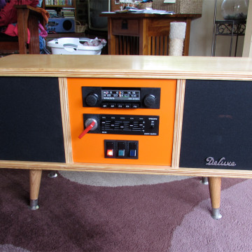 Yeah, baby! IKEA hacks are all the rage. This mod table-top unit combines the Rast nightstand with retro audio gear for a 50s/60s/70s/80s mashup. Featuring a Clarion deck and EQ from a Nissan Maxima, a guitar switch selector and a Swinger badge from a Dodge Dart - it's one-of-a-kind. Far out! Retail price: $450